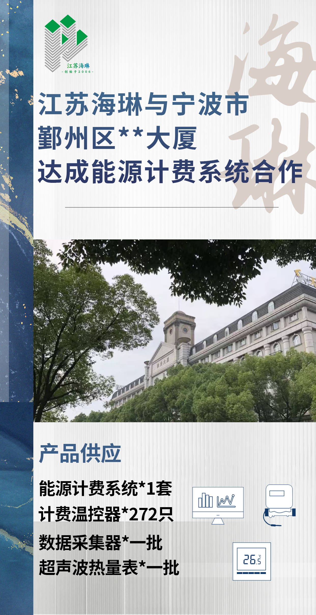 江蘇海琳與寧波市鄞州區**大廈達成中央空調計費系統合作;相比較傳統按面積分攤的空調費用結算方式,中央空調計費系統按空調開啟實際使用量收取費用,多開多付,少用少付,不用空調則無需支付費用。傳統的面積分攤收費方式,開和不開空調費用一樣,既然費用一樣,那就大家都開空調,導致空調運行費用居高不下;計費系統公平收費、準確計量,收費有憑據,可以有效減少業主和物管之間的矛盾。