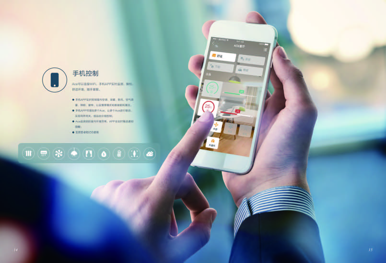 ACE將溫度控制、燈光控制、窗簾控制、新風控制、空氣檢測集于一身