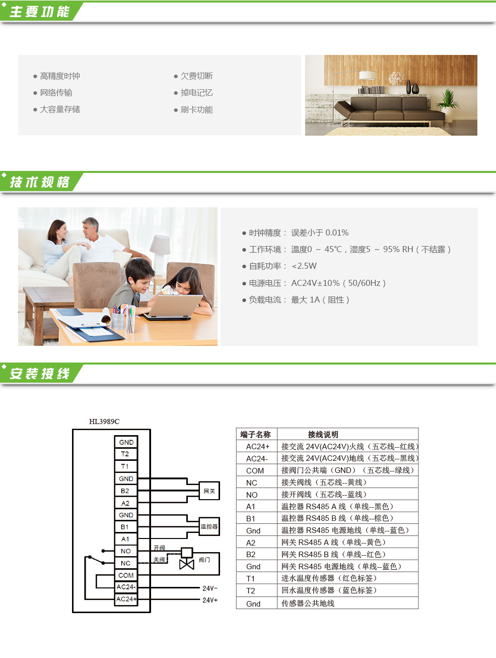 刷卡計量控制器HL3989C是應用于集中供熱采暖系統的智能控制器。采用RS485與室內溫控器進行通訊,RS485通訊方式與網關互聯。可以精確計量閥門開啟時間,對室內溫度及設定溫度等參數精確計量和存儲。現場安裝極為簡單方便。 可與溫控器HL3931S配套使用。