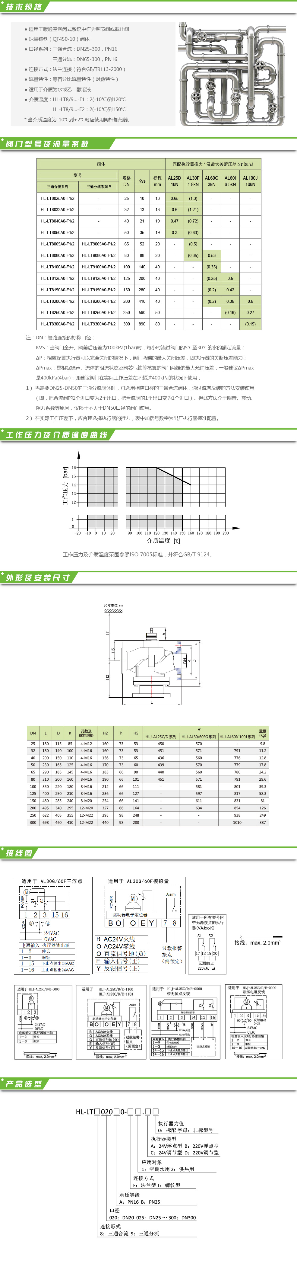 HL-LT系列電動調節閥主要應用在暖通空調系統中,通過接收控制器輸出的控制信號,對系統進行流量和液位等參數控制。主要應用在冷熱水系統、壓差旁通系統、低壓蒸汽及供熱系統中對各種流量、壓力、濕度、溫度的調節。