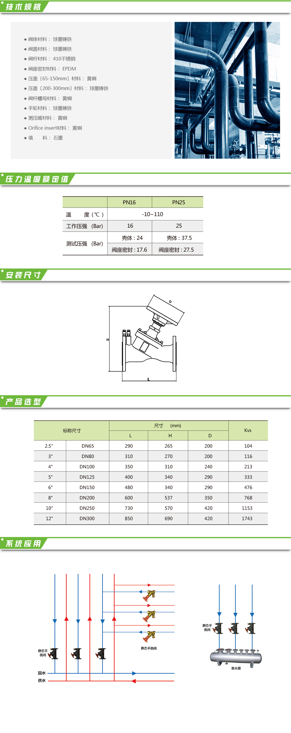 海林靜態平衡閥,可應用于供熱或制冷的定量水系統中,用來平衡流量;具有關斷功能,可代替截止閥;具有最大行程鎖定功能,當系統調試后,可將鎖定功能開啟,日后需要關閉靜態閥進行管路維護與檢修,結束后可以直接將閥門恢復到設定好的最大行程處,避免二次調試,節約大量時間與成本;攜帶有測量接頭,方便與測量設備的快速連接,節省調試時間;可安裝于供水或回水管路。