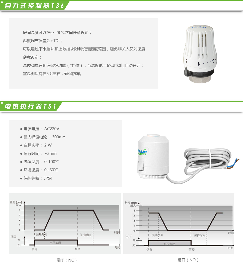 恒溫閥控制器主要用于地板采暖系統中,控制管道的關閉與開啟。具體應用于分集水器各支路閥門、小型閥門、動態平衡閥門的電熱執行器的電驅動部分。工作運行無噪音,螺母連接安裝方式,簡單、安裝迅速,拆卸方便。當室內溫度達到溫度控制器設定的溫度時,電熱執行器內正熱敏電阻開始工作沒加熱熱膨脹裝置使閥門關閉,反之,室內溫度降低,溫控器斷開,執行器降溫,膨脹裝置收縮, ...