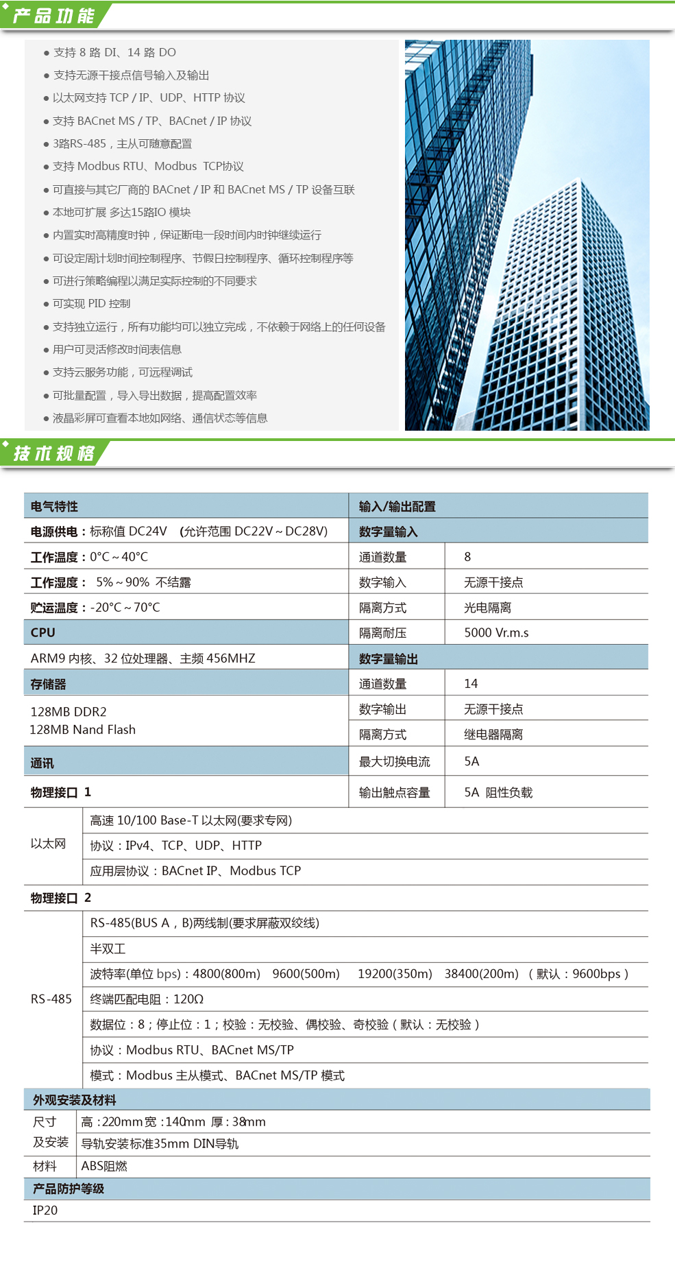 HL-D02 樓宇控制器是一款支持多種協議、帶有輸入輸出接口的智能可編程控制器,主要用于建筑內暖通空調等設備的控制,TFT2.8寸液晶彩屏,支持使用BACnet、Modbus通訊協議及云服務,可實現遠程配置與監控,USB 接口,方便系統升級與維護。每個樓宇控制器即可獨立工作,又可與其他控制器聯網使用,還可連接 I/O 擴展模塊。另外,該樓宇控制器也可連接組態屏(HMI)實現人機交互管 ...